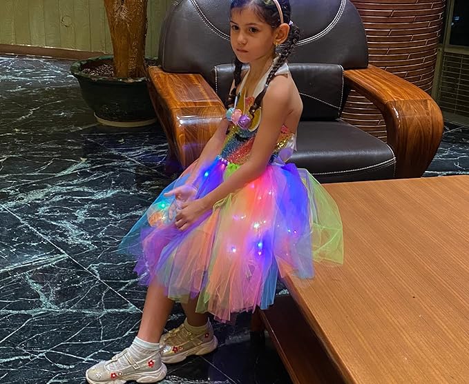 🦄 Effet lumineux LED pour un rendu enchanteur 👗 Tulle arc-en-ciel premium, doux et volumineux 🎀 Serre-tête licorne inclus, look complet garanti 🎁 Idée cadeau rêvée pour filles de 3 à 10 ans 💫 Confort et émerveillement assurés à chaque instant 🛡️ Garantie satisfaite ou remboursée